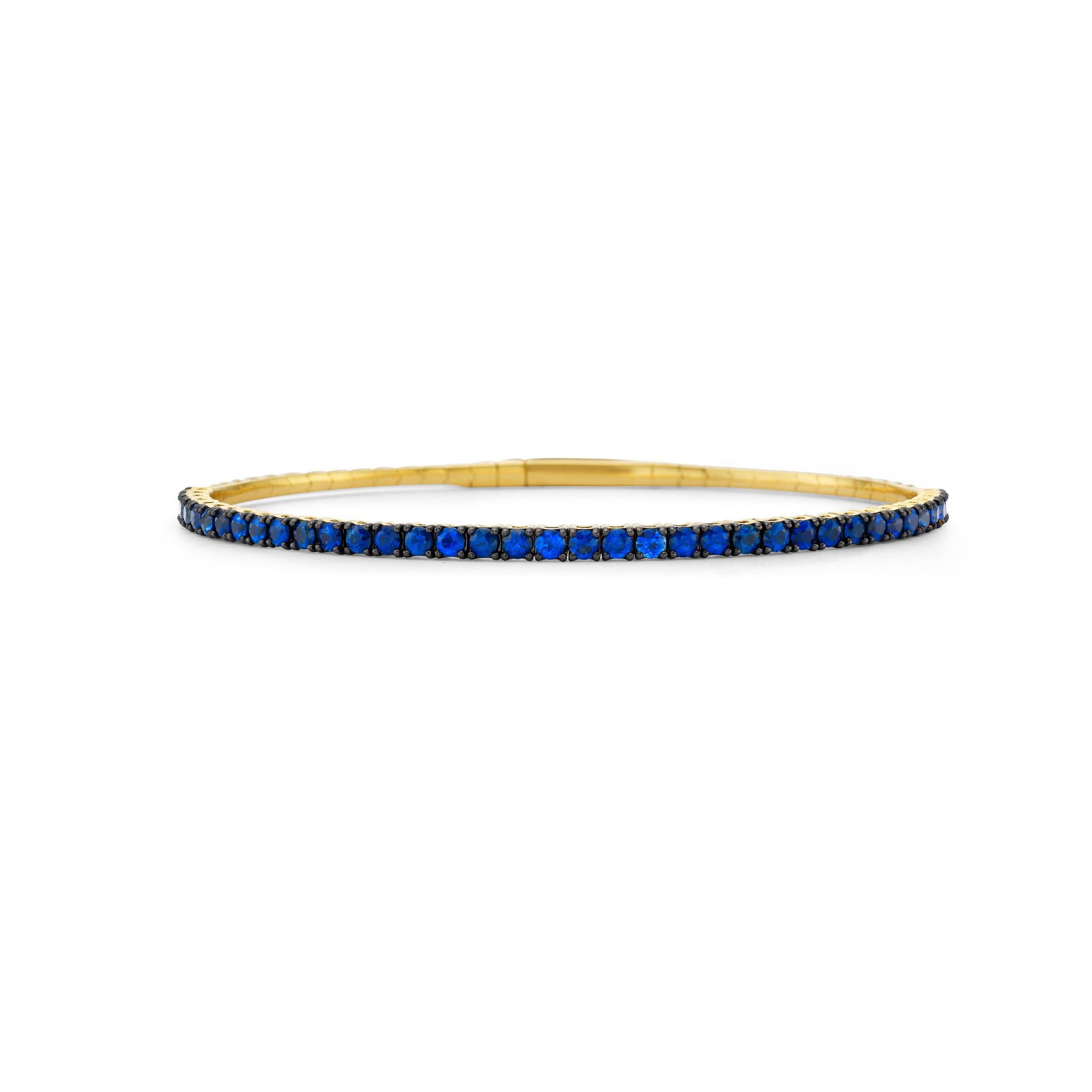 This 14K gold bangle features a flexible design and beautiful blue sapphire accents. The flexible style allows for comfortable wear and the stunning sapphires add a touch of elegance. Upgrade your jewelry collection with this stylish and versatile piece.