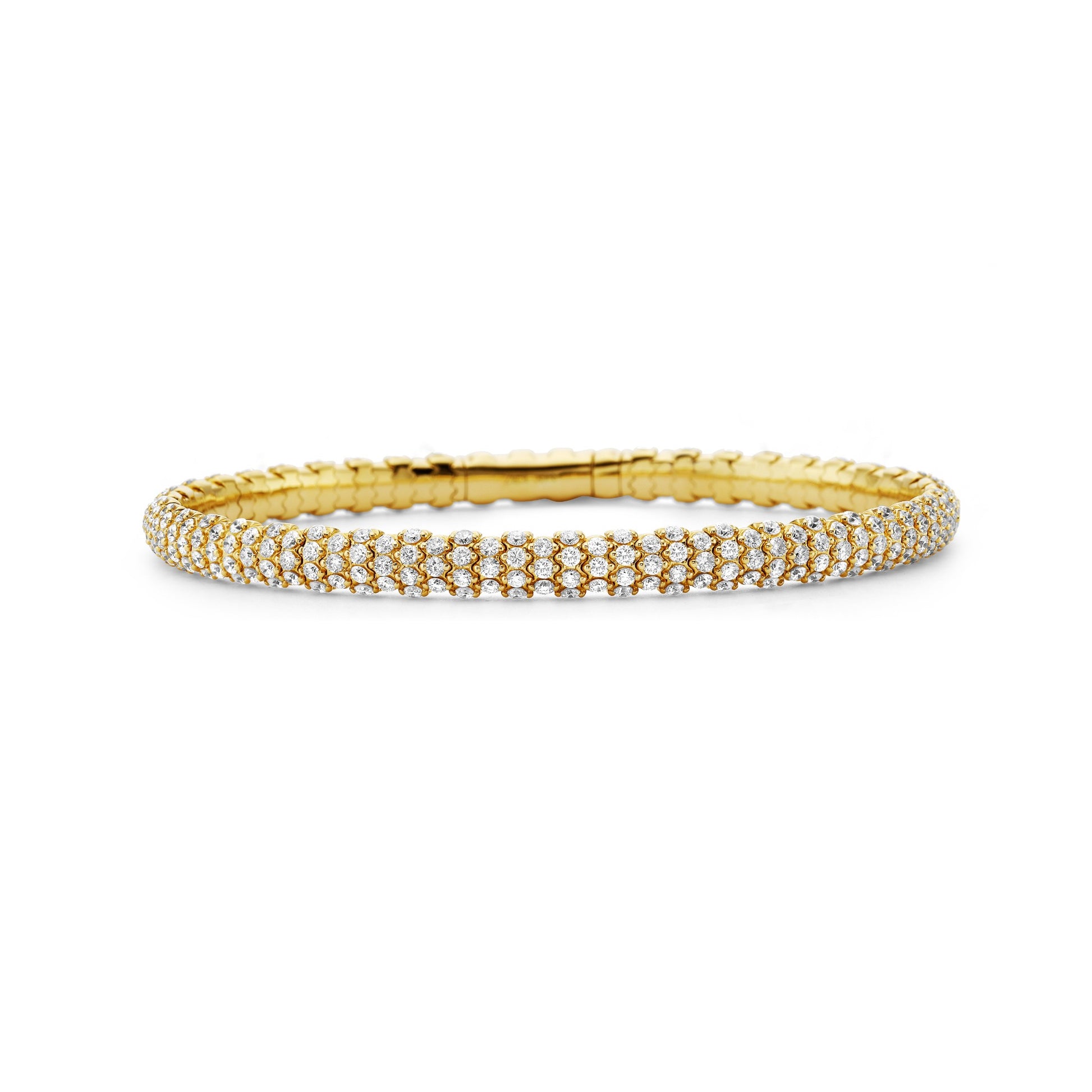 Add a touch of sparkle with our 14K Gold Flexible Diamond Pave Bracelet. This stunning piece features a flexible design adorned with brilliant diamond pave, offering a perfect blend of elegance and comfort. Ideal for enhancing any look with a hint of luxurious shimmer.