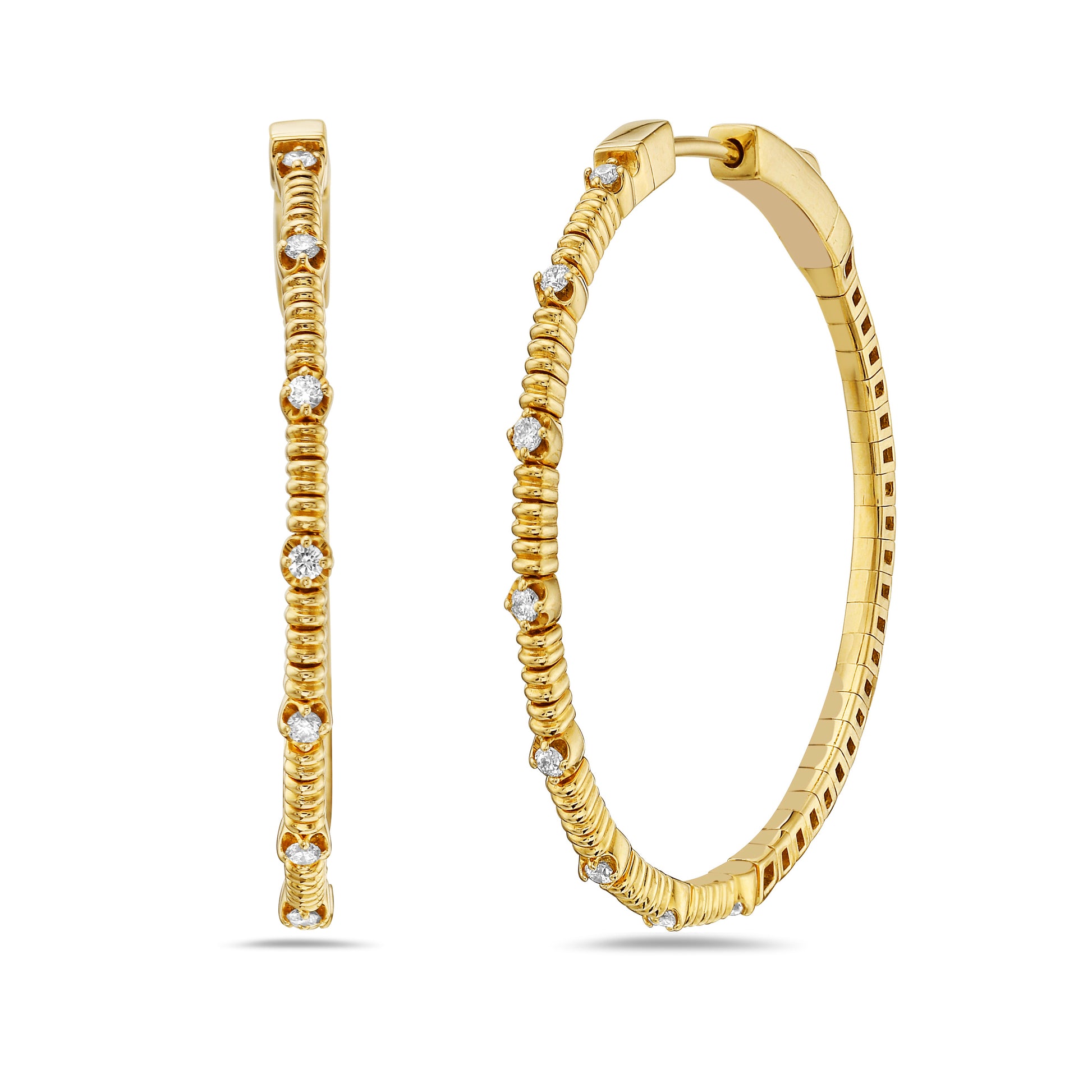Drape yourself in the modern allure of our Flexible Hoops with Diamonds. These earrings seamlessly blend style and comfort with a flexible design, allowing them to gracefully follow the curves of your ears. Each hoop is adorned with sparkling diamonds, adding a touch of sophistication to your look. Embrace the versatility and elegance of these hoops as they effortlessly enhance any ensemble with a radiant and contemporary charm.
