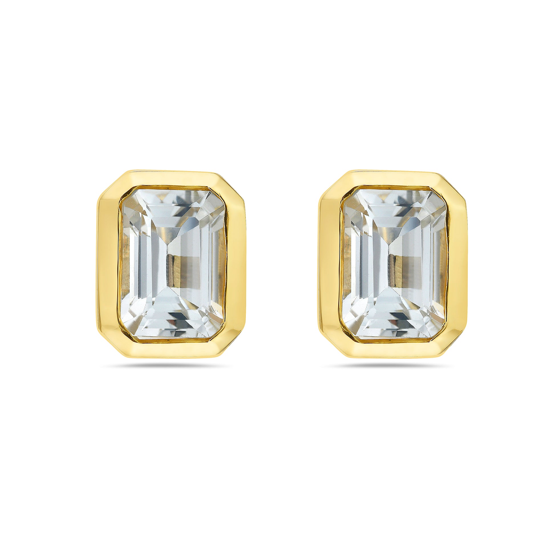 14K Gold White Topaz 7x5 Emerald Cut Bezel Studs