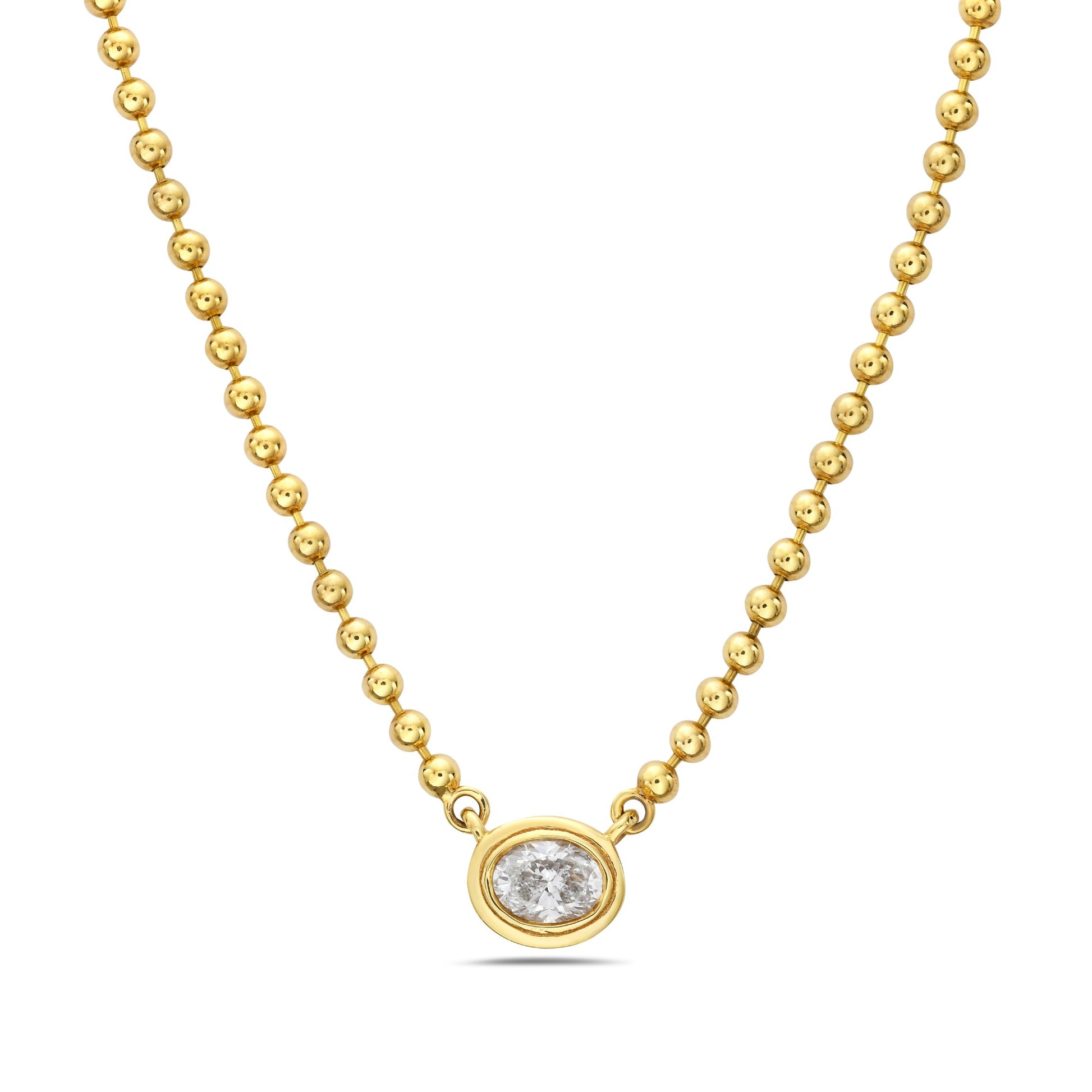 The Oval Double Bezel Diamond Pendant exudes elegance with its sleek design featuring a stunning oval-cut diamond secured within a double bezel setting. This pendant offers a timeless sophistication, perfect for adding a touch of sparkle to any outfit. Crafted with meticulous attention to detail, it is a versatile piece that effortlessly complements any style, making it a must-have accessory for any jewelry collection.